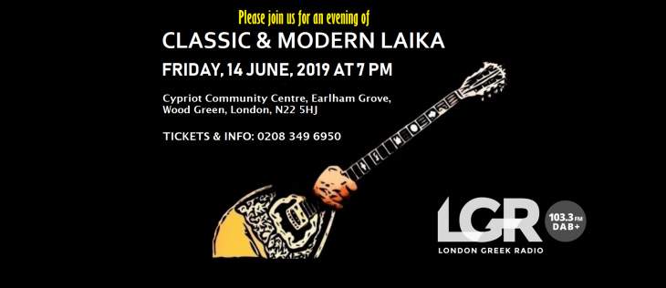 London Greek Radio [LGR] Events Presents An Evening of Classic and Modern Laika on Friday 14th June 2019, at the Cypriot Community Centre. LGR line-up featuring George Gregoriou (Kokis), Nikos Savvides, Giorgios Yerasimos, Elizabeth Chapman and Katerina Neocleous. This is the 30th anniversary since obtaining our FM license, what better way to celebrate than with local acts.