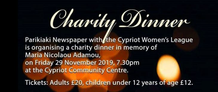 Parikiaki Newspaper together with the Cypriot Women’s League is organising a Charity Dinner in memory of Maria Nicolaou Adamou on Friday 29th November 2019, 7.30pm at the Cypriot Community Centre Earlham Grove, Wood Green, London N22 5HJ.