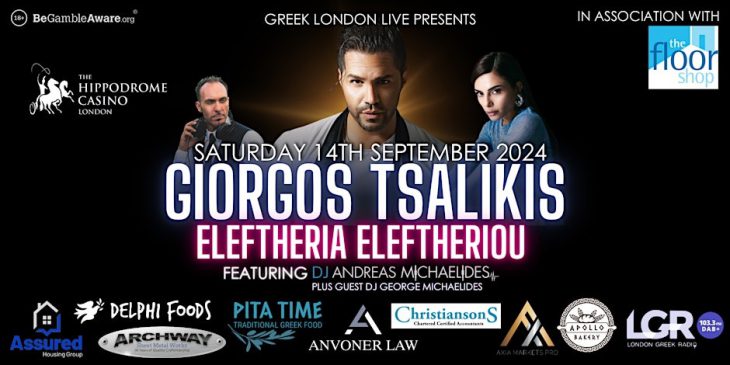 London Greek Radio is proud to be the Official Media Sponsor of: Giorgos Tsalikis & Eleftheria Eleftheriou Live In London on Saturday 14th September at London’s Renowned Hippodrome Casino, Leicester Square 🔥